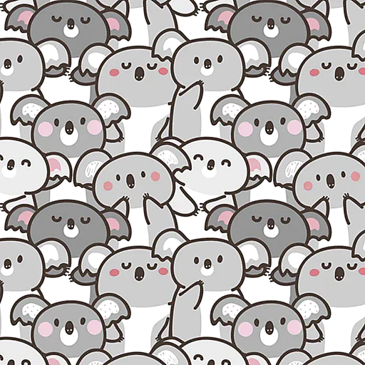 Un estampado completo de dibujos de koalas con diferentes posturas. Opciones de material: Vinilo impreso para interiores: Fácil de limpiar y mant...