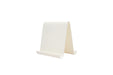 Expositor impreso en 3D de color blanco, con un diseño curvo en forma de U invertida que permite colocar flyers por ambas caras de manera visible y ordenada. Ideal para mostradores, oficinas o eventos, combina funcionalidad y estética, ofreciendo una forma práctica y atractiva de presentar tus materiales informativos.