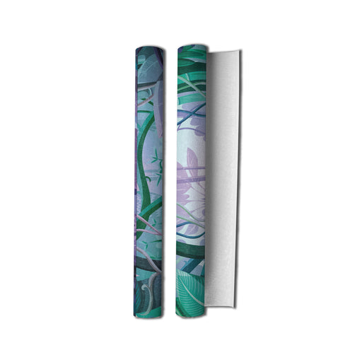 Un entorno místico con tonos morados y azules que evocan un mundo de fantasía lleno de misterio. Opciones de material: Vinilo impreso para interi...