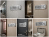 Una colección de placas de aseos en bicapa con pictogramas grabados en láser y trasera de metacrilato transparente, pensadas para señalizar cada espacio de forma clara y elegante.