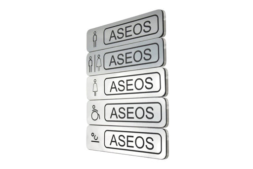Qué esUna colección de placas de aseos en bicapa con pictogramas grabados en láser y trasera de metacrilato transparente, pensadas para señalizar c...