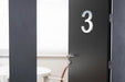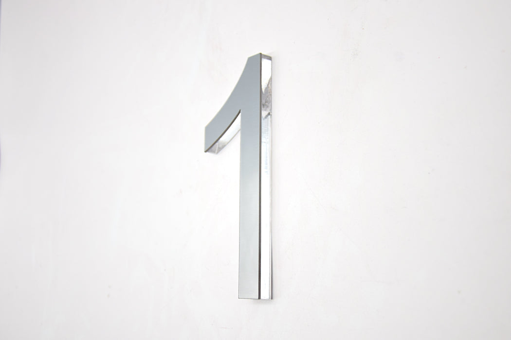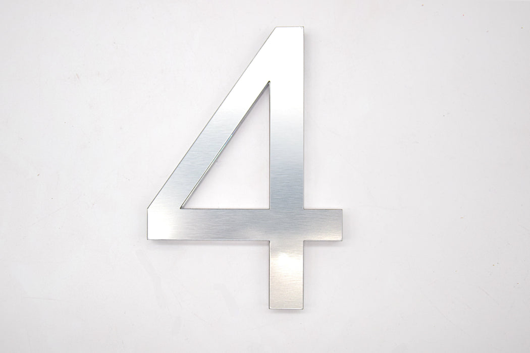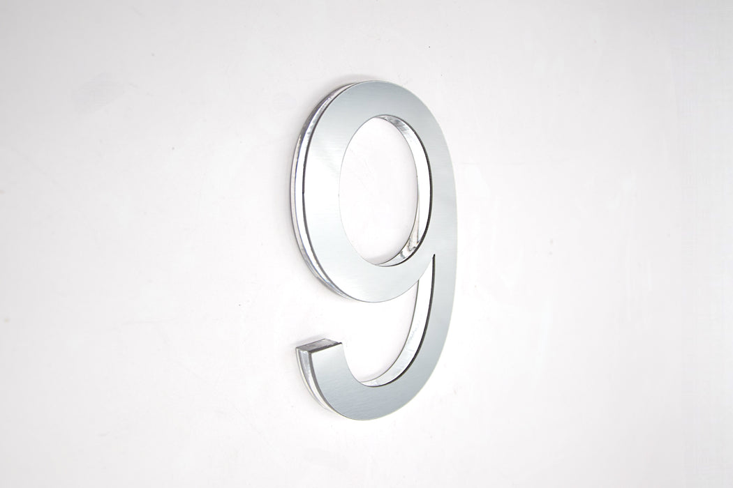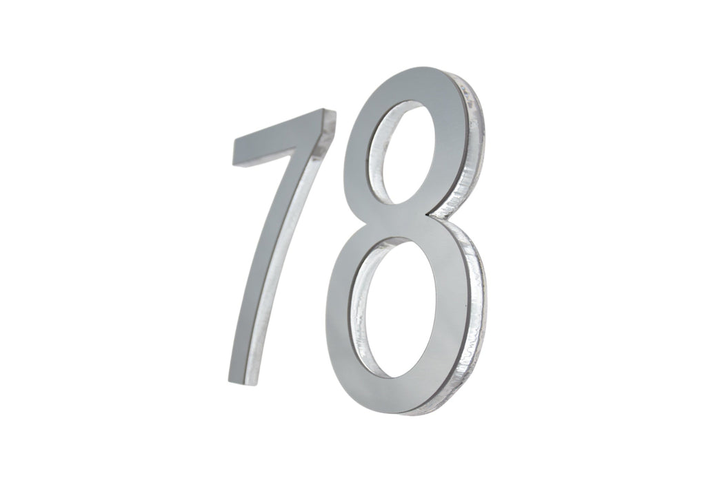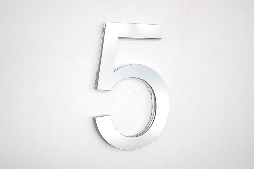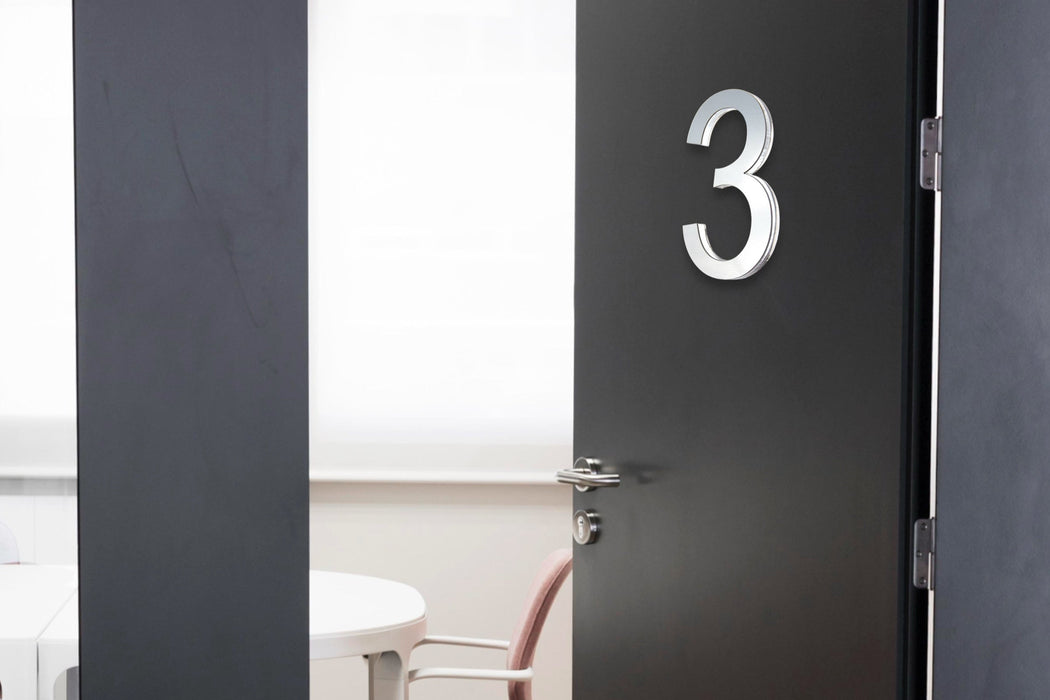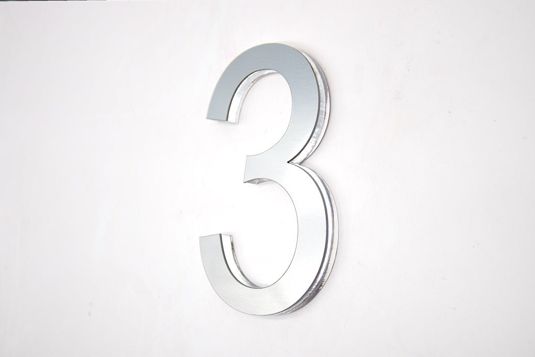 Numeración con frontal bicapa dorado y trasera de metacrilato de 5 mm. Elegantes, resistentes y personalizables para señalización.