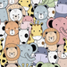 Un estampado completo de dibujos de animales con diferentes posturas.